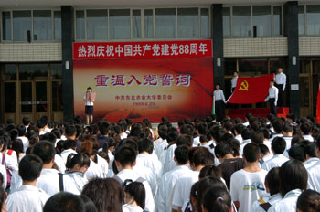 6月29日上午,东北农业大学全体校领导、全体党员、部分入党积极分子共5000余人在主楼前广场隆重集会,通过举行“重温入党誓词”活动纪念建党88周年。