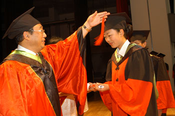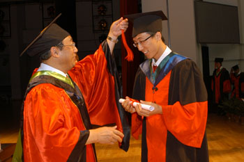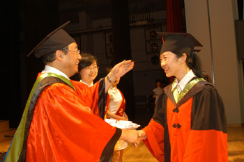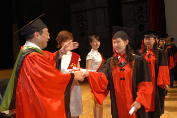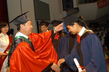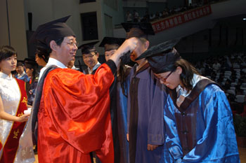 7月1日,我校2009届研究生毕业典礼暨学位授予仪式在音乐厅举行。93名博士研究生和846名硕士研究生圆满完成学业顺利毕业。校学位评定委员会主席、校长李庆章,校学位评定委员会副主席、副校长秦智伟,校学位评定委员会委员、副校长胡宝忠为毕业生授予学位,并颁发毕业证书。