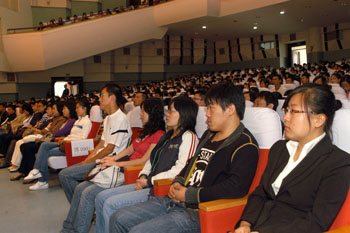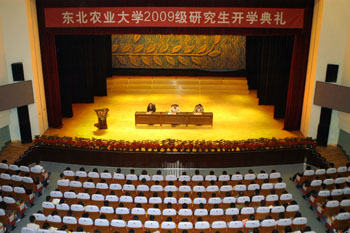 9月9日,我校在音乐厅召开2009级研究生开学典礼。校学位评定委员会主席、校长李庆章,校学位评定委员会副主席秦智伟,副校长胡宝忠,校学位评定委员会委员,各学院研究生管理人员,研究生导师,在校生代表,2009级全体研究生出席典礼。