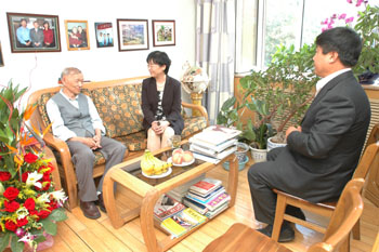在第二十五个教师节即将到来之际,校党委书记徐梅在副校长张长利、校办副主任王洪亮的陪同下亲切慰问了王金陵教授、蒋亦元教授,并送去了鲜花。