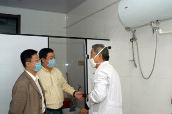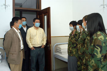 9月11日上午,党委副书记胡国良以及学工处处长解宗军,后勤处党总支书记鲍彦广、处长张显伟,校办副主任王洪亮,食品学院党总支副书记高汉峰等看望慰问了校医院留验观察区隔离观察的学生。胡国良副书记对隔离观察的同学表示慰问,希望他们有什么困难和要求尽管向学校提出来,学校会尽量解决他们的困难。胡国良书记同时要求校医院和食品学院要照顾好隔离观察的学生,在保证安全的情况下,尽量满足同学的各方面要求。
