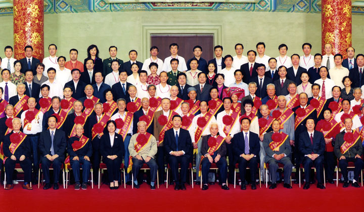 表彰大会由中共中央政治局委员、中央书记处书记、中央组织部部长李源潮主持。中共中央政治局常委、中央书记处书记、国家副主席习近平出席会议并讲话。他强调,在缔造新中国、捍卫新中国的艰苦斗争中,在建设新中国、发展新中国的伟大征程上,广大老同志建立了不可磨灭的历史功劳,发挥了中坚和骨干作用,不愧是人民共和国的奠基者、社会主义事业的建设者、改革开放和社会主义现代化建设的开拓者。要认真学习和大力弘扬广大老同志的光荣传统和崇高精神,结合新的实际不断发扬光大、一代一代地传下去。