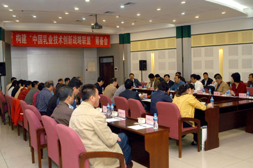 17日上午,由国家乳业工程技术研究中心发起,国内乳品产业23家乳品企业、14所大学、5家科研院所,共计42家单位参与的“中国乳业技术创新战略联盟”筹备会议在我校图书馆隆重召开。省科技厅副厅长杨廷双、校长李庆章、副校长冯晓、省科技厅农村处处长唐晓明、省教育厅科技处副处长李柏峰、校科技处处长焦光纯、校共建办主任孙占海及乳品中心领导参加了此次会议。会议由乳品中心主任生庆海主持。