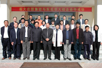 我校党委书记徐梅、大庄园集团董事长陈希滨、省科技厅潘忠副厅长、省畜牧兽医局孙文志副局长、副校长郑秋鹛与省教育厅科技处处长吴涛共同为“东北农业大学(大庄园)科技成果转化基地”、“大庄园食品东北农业大学研发中心”揭牌。我校招生与就业指导处副处长秦晓秋、研究生处副处长卢铁光、教务处副处长宋颖与大庄园集团的相关领导共同为“东北农业大学实验实习基地”、“研究生创新基地”、“大学生就业基地”揭牌。