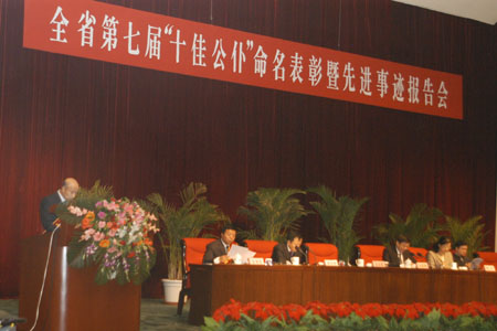 10月29日,全省第七届“十佳公仆”命名表彰暨先进事迹报告会在哈尔滨市和平会堂召开。黑龙江省委常委、宣传部部长衣俊卿,省委组织部副部长夏杰、省劳动和社会保障厅厅长秦玉德、省纪委常委秘书长兰冰清,省委宣传部副部长陈永芳出席会议。会上,省委宣传部副部长夏杰宣读了中共黑龙江省委、黑龙江省人民政府关于命名表彰全省第七届“十佳公仆”和“优秀公仆”的决定。李景富等三位“十佳公仆”代表分别作事迹报告。