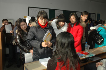 12月13日上午,东北农业大学2010届毕业生冬季供需见面会在教学楼隆重举行,来自全国203家企事业用人单位进行了现场招聘,提供就业岗位2400余个。供需见面会吸引了省内众多高校的毕业生前来参加。