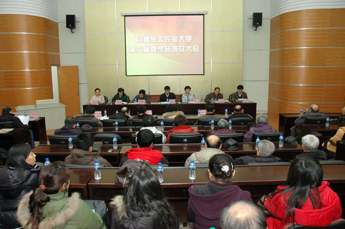 选举大会之后,召开了我校民盟第六届委员会成立大会。省政协副主席、民盟省委主委赵雨森,东北农业大学党委书记徐梅,民盟省委副主委杨永道,民盟省委副主委、民盟哈尔滨工业大学主委祁佩时,民盟省委秘书长王健凤,民盟省委常委郑秋鹛,民盟省委组织部赵龙云、战欣等出席了会议;哈尔滨工业大学、东北林业大学、哈尔滨工程大学、哈尔滨理工大学、黑龙江大学、黑龙江中医药大学、哈尔滨师范大学、黑龙江工程学院等兄弟院校的盟主委到会祝贺。我校党委宣传统战部部长李岿然,副部长宋跃芬、施喜军,校九三学社主委车代弟分别代表职能部门和校兄弟党派参加会议。会议由校民盟副主委郑孝萍主持。