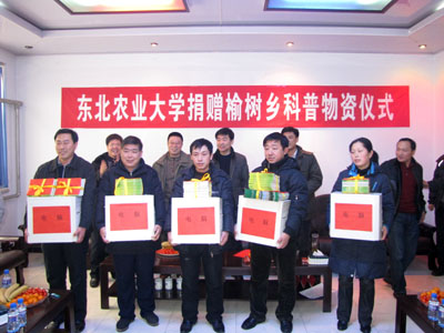 上午,校党委副书记胡国良、学生工作处处长解宗军、校团委书记徐国峰、工程学院党总支副书记李忠祥、校团委干事吕嘉昌、动物医学学院教师赵树臣、实验实习基地教师赵鸿波,以及有关专业博士、硕士、本科生共13人组成的“三下乡”社会实践服务团,乘车来到肇州县榆树乡。上午11点,肇州县领导陪同服务团抵达榆树乡政府,在榆树乡政府会议室,服务团与肇州县委副书记徐东伟、县政府副县长罗晓滨及我校肇州县挂职副县长宁海龙、榆树乡挂职副乡长孙勇等进行了座谈。会后,双方举行了“东北农业大学捐赠榆树乡科普物资仪式”,服务团为榆树乡带来了科技图书600册、电脑5台、打印机1台。随后,服务团一行考察了榆树乡膜下滴灌种植示范区。在这里赵树臣、赵鸿波两位教师为广大村民讲解了相关农业科技知识,并现场回答了农民的提问。工程学院计算机专业硕士生就榆树乡政府网站等信息化建设工作进行了指导,服务团还针对当地农业生产的实际问题开展了调研和问卷调查活动 ,受到农民朋友的欢迎。