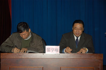 李庆章校长代表学校与各院、部、处、办,直属及附属单位负责人签订了2010年安全工作责任状。