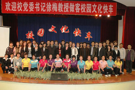 5月12日晚,校党委书记徐梅应邀来到图书馆一楼报告厅做客校园文化快车,与我校部分教师以及600余名学生倾情交流。本期校园文化快车的主题是“做最努力的书记”。