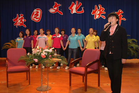 在互动环节中,徐书记就同学们提出的高校如何培养杰出人才、高年级学生对考研和就业的困惑、学校未来发展以及我校团代会、学代会提案、食堂物价等问题做了解释和回答。最后,徐书记演唱了《校园里有一排年轻的白杨》,悠扬的旋律、动听的歌声将本期校园文化快车推向了高潮。