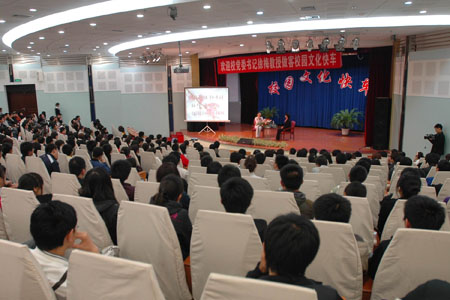 晚6时,校园文化快车在悠扬的音乐中启程,徐梅书记首先向同学们致以亲切的问候,表示很高兴近距离和同学们沟通,轻松的话语很快拉近了嘉宾和观众之间的距离。随后,主持人展示的一段采访徐梅书记身边的同事、学生对她评价的视频,更是让现场的氛围变得轻松起来。谈话中,徐书记给同学们讲述了自己那段忙碌、充实、快乐的大学时光,大学阶段她不仅收获了优异的成绩、组织能力、团队精神,更收获了弥足珍贵的同窗友谊。