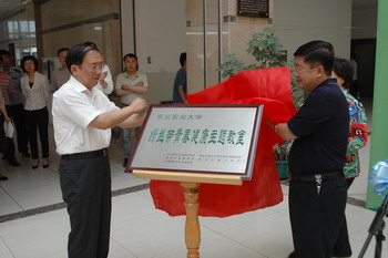 副省长程幼东、哈尔滨市副市长张显友为东北农业大学“绿丝带青春健康”主题教室揭牌。