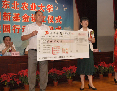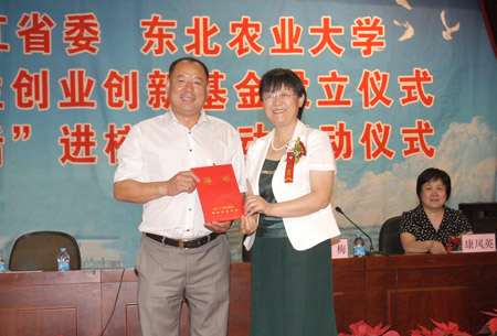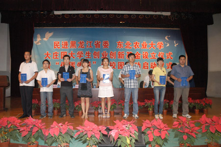 6月25日上午,民进黑龙江省委、东北农业大学、大庄园大学生创业创新基金设立仪式暨“低碳生活”进校园行动启动仪式在我校新图书馆一楼会议厅举行。民进黑龙江省委主委、副省长程幼东,教育厅厅长张永洲、民进黑龙江省委副主委康凤英、黑龙江大庄园集团董事长陈希滨、东北农业大学党委书记徐梅等领导出席启动仪式。仪式由我校副校长郑秋鹛主持,我校部分教师、学生、机关干部、离退休教师代表共计400人参加了启动仪式。