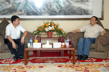 我校李庆章校长(右)与国家留学基金委来华部李彦光主任进行交流