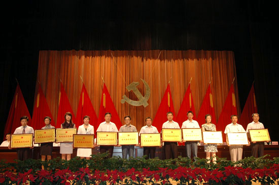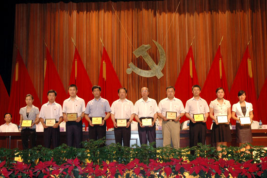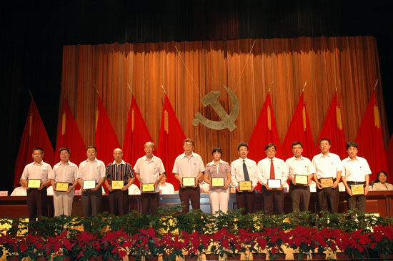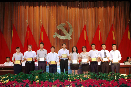 校长李庆章代表学校党委宣布东北农业大学《关于表彰先进基层党组织、优秀共产党员和优秀党务工作者的决定》。园艺学院党总支、农学院党委、理学院党总支、资源与环境学院党总支、机关党委组织人事支部等12个单位被授予“先进基层党组织”称号;李景富、李辉、佟明耀、解宗军、柴玉华、刘世英等23名同志获得“优秀共产党员”称号;申甲、肖冬梅、施喜军、于洪涛、许海峰等10名同志获得“优秀党务工作者”称号。