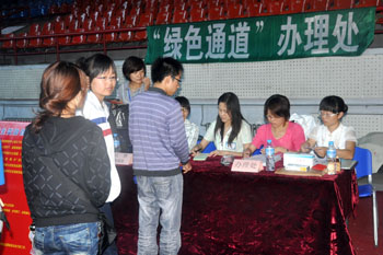 做好贫困生的入学工作一直是学校关心的重点。今年是我校连续第五年开设“绿色通道”, 家庭经济困难的学生通过“绿色通道”入学,可以先行办理入学和住宿手续,缓交学费和住宿费。在日后的学习生活中,还能根据具体情况得到国家助学贷款、勤工助学、减免学费、困难补助、奖助学金等不同方式的资助,以确保每位新生不因家庭经济困难而无法入学。此外,学校还为每一个通过“绿色通道”入学的新生准备了200元饭卡、免费军训服和一套含基本学习、生活用品的爱心礼包。截止到8月28日下午六点,学生工作处共为新生办理“绿色通道”215 人。今年通过“绿色通道”入学的新生纷纷表示入学报到的流程非常方便快捷,很好地解决了家庭经济困难新生面对的入学难问题。同时,针对今年灾情多发的情况,学校提前关注、关心灾区学生,在新生入学前第一时间联系学生或学生家长,了解询问灾情。学生入学后,将通过加强心理疏导和资助工作,帮助灾区学生顺利完成学业。