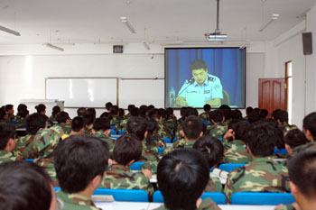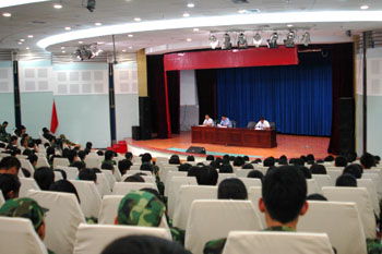 9月1日下午,我校举行2010级新生入学教育大会,主会场设在图书馆一楼报告厅,分会场设在研究生楼、实验楼共计23个多媒体教室。参加大会的有学工处、教务处、保卫处的领导和相关工作人员,2010级新生辅导员、教官及全体新生近4000人。大会由校团委书记徐国峰主持。
