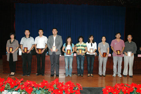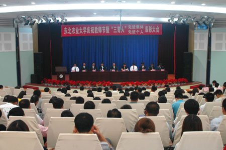 会上,李庆章校长宣读了我校获得哈尔滨市“三育人”先进个人名单及我校《关于表彰2009~2010学年度“三育人”工作先进集体和先进个人的决定》。生命科学学院朱延明教授获得哈尔滨市三育人先进个人荣誉称号。生命科学学院、经济管理学院、计划财务处、食品学院实验教学中心、理学院数学系5个单位被授予东北农业大学“三育人”先进集体荣誉称号。王淑艳、白靖文、闫雷等23人被授予“教书育人”先进个人荣誉称号;于雷、马秀峰、王伟等19人被授予“管理育人”先进个人荣誉称号;于威、石永昆、冯丹等16人被授予“服务育人”先进个人荣誉称号。李庆章校长在宣读表彰决定中,代表学校希望受到表彰的先进集体和先进个人在今后的工作中,戒骄戒躁,积极进取,为学校的发展建设再做新的贡献,同时号召全校各单位和全体教职员工向受到表彰的先进集体和先进个人学习,爱岗敬业、无私奉献、开拓进取,勇于创新,不断推动学校各项事业科学发展。