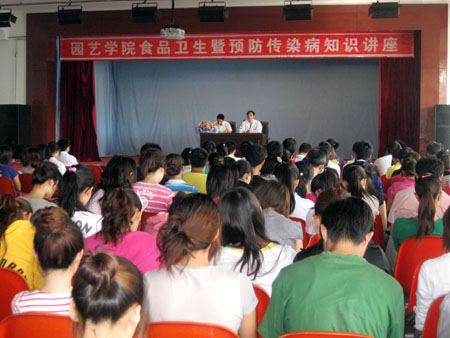 在讲座中,刘凤权院长结合发生在同学们日常生活中的例子,用生动的语言向与会学生详细阐述了食品卫生安全的重要性,并从季节的变换和秋季各种流行性疾病传播途径等方面入手,深入浅出地讲解了传染病的预防知识。程国林书记在总结讲话中向同学们提出两点要求:一是加强宿舍管理;二是注意饮食环境卫生,尽可能不到校外就餐。