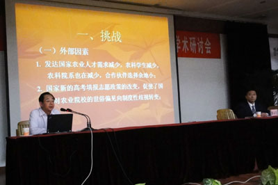 学术研讨会上,我校胡宝忠副校长作了题为《“十二五”中国农业教育面临的挑战与思考》的学术报告。报告从外部因素、社会现象、内部问题等三个方面,分析了中国农业教育面临的挑战,提出“以提高人才质量为核心、以构建多样化人才培养模式为突破口、以建设特色本科教育体系为目标”的一系列高等农业教育发展对策和建议。大家一致认为,报告全面审视和分析了“十二五”中国农业教育面临的巨大的挑战和机遇,提出的发展对策和建议引人深思,充分体现出高等农业教育工作者应有的责任感和使命感。