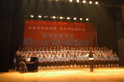 据悉,本次主题为“青春唱响祖国颂、创先争优谱新篇”的歌咏比赛由校团委主办,全校18个学院共组成12支队伍参赛,每支合唱队成员都由各学院不同年级的学生党员、优秀入党积极分子、国家奖助学金获奖者代表组成,是我校青年学生创先争优的主力军。本次比赛的评委由校离退休人员工作处的7位老同志担任,他们秉持着公平、公正、公开的原则,分别从台风、艺术、舞台表现、指挥与观众反响等方面进行了综合评分。最终艺术学院合唱队和农学院、园艺学院联队两支队伍荣获一等奖,研究生部、经济管理学院、食品学院、水利与资环学院联合代表队获得二等奖,6支合唱队获得三等奖。