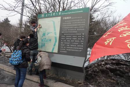 | 经济管理学院志愿者清洁校园内的路标指示牌
