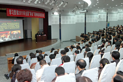 4月1日下午,学校在新图书馆一楼会议厅召开学习贯彻2011年全国“两会”精神辅导报告会,黑龙江省政协副主席、全国政协常委、民盟省委主委、东北林业大学副校长赵雨森应邀为我校师生作了题为《贯彻“两会”精神,践行科学发展》的辅导报告。全体校领导以及全校副科级以上干部,全体辅导员、思想政治理论课教师、教工党支部书记,部分教师代表参加报告会。会议由党委书记、校长徐梅主持。