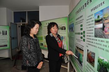 | 副校长郑秋鹛向省科技厅副巡视员王双妹介绍我校科研成果