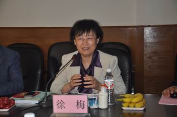 在主楼306会议室,校党委书记、校长徐梅向考察组介绍了我校节约型校园建设工作开展情况,并表示在“十二五”期间,学校将进一步加大节能减排工作力度,积极完成国家、省政府规定的节能减排目标要求。