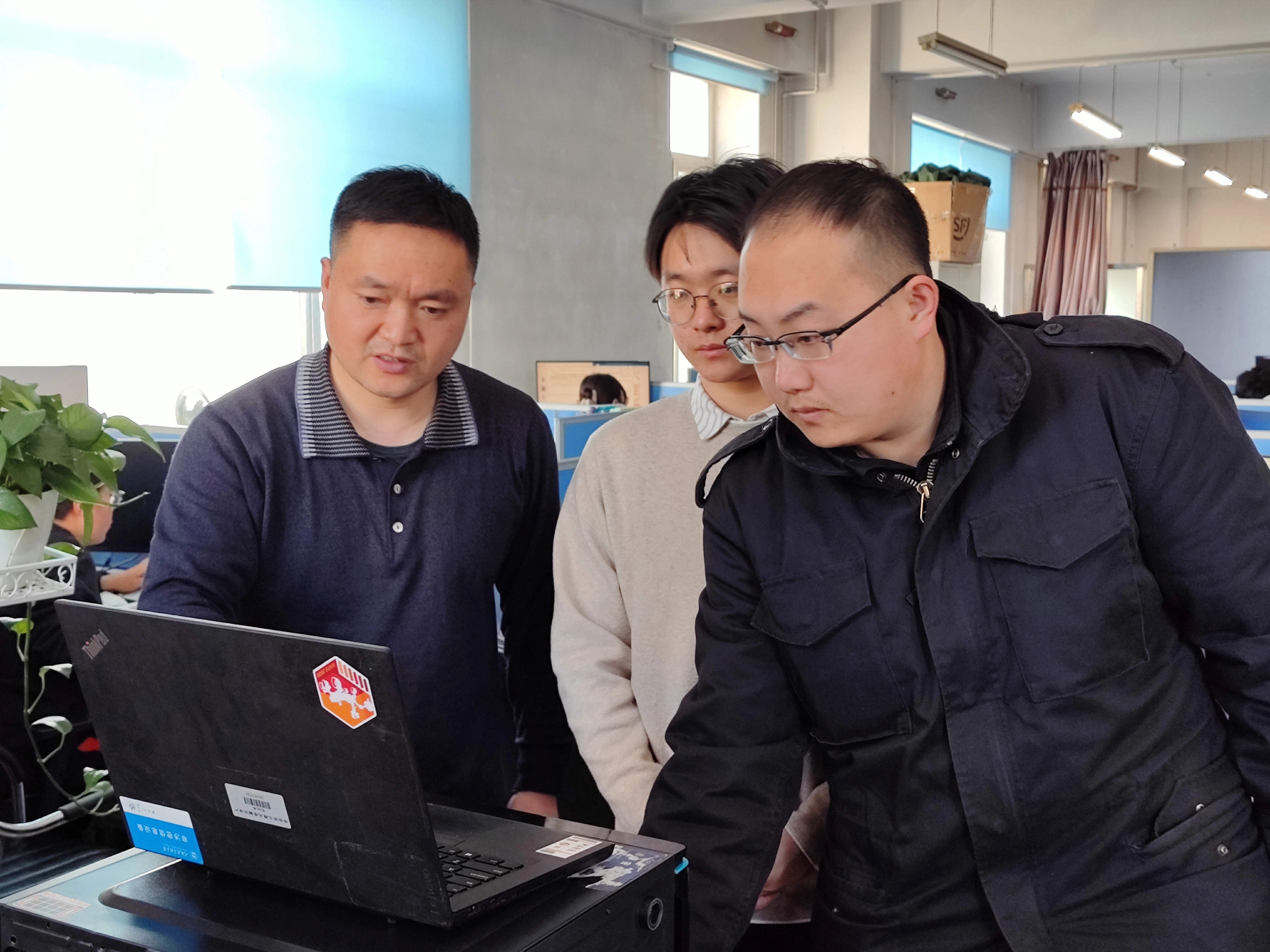 庞福振(左一)和学生正在监测相关项目的动态数据