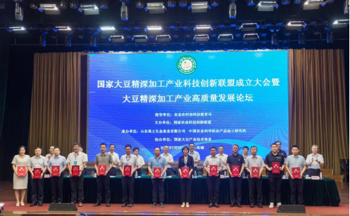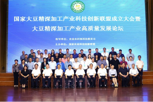 为大力发展大豆产业,推动提升大豆自给率,破解大豆产业困局。7月10日,由农业农村部科技教育司指导,山东省禹城市人民政府、国家农业科技创新联盟主办的国家大豆精深加工产业科技创新联盟(以下简称“联盟”)成立大会在山东省禹城市举行。东北农业大学作为副理事长单位,由黑龙江省绿色食品科学研究院国家大豆工程技术研究中心执行主任李杨作为副理事长参加会议。
