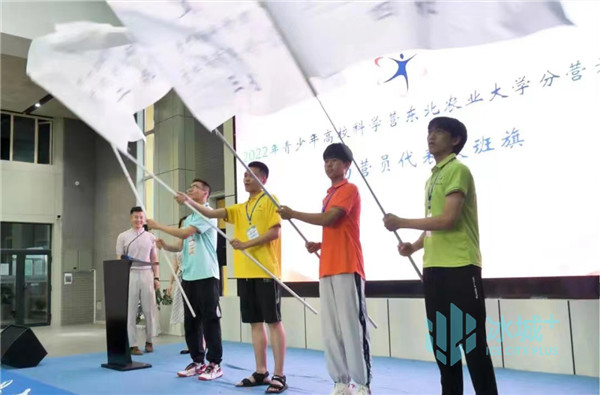 7月22日下午,2022年青少年高校科学营东北农业大学分营开营仪式暨营员见面会在东北农大梦想小镇连廊大厅举行,来自我省12所学校的12名带队教师携优秀高中生营员齐聚一堂。授旗仪式后,全体营员正式开启为期7天的高校科技体验之旅,营员们将在本次科学营中感受大学精神、探索科学真理、收获真挚友谊。