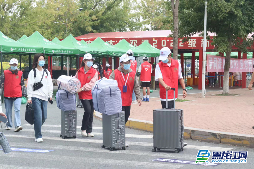 元气满满的2022级新生拎着溢满青春梦想的行李箱走进校园。“一站式”“一对一”“点对点”“线上+线下”,在东北农业大学校园里迎新工作如火如荼,到处都是迎新工作人员和大学生志愿者忙碌的身影,核验新生身份、检测核酸证明、测体温、做向导、运行李、协助办理报到手续,所有工作有条不紊、现场井然有序。