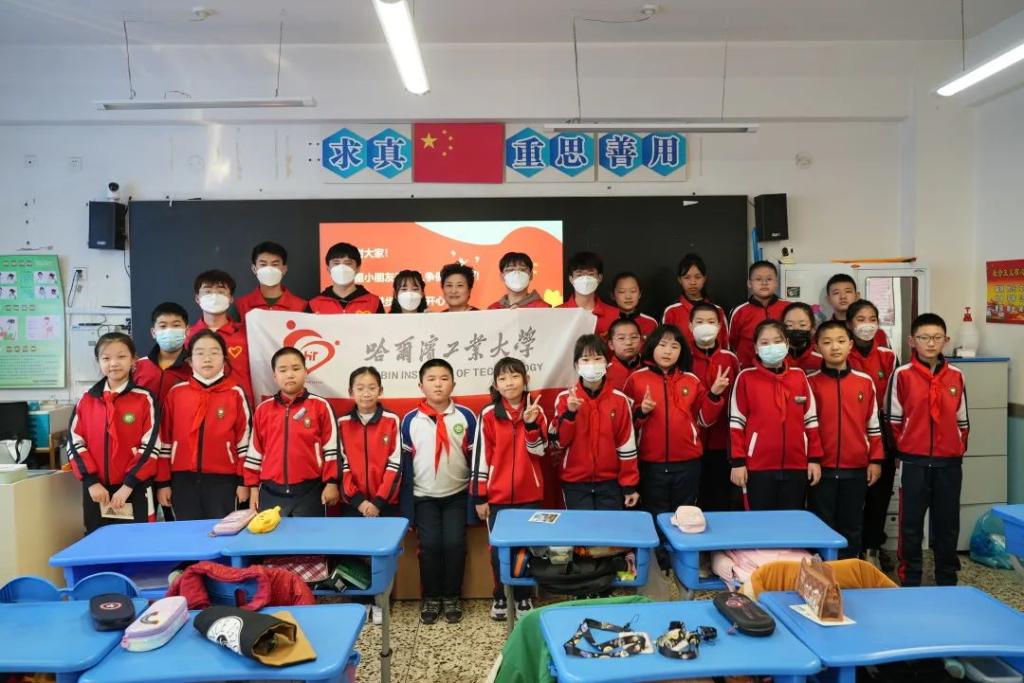 哈工程志愿服务队走进中小学,进行科普宣讲,激发学生们对科创的浓厚兴趣。
