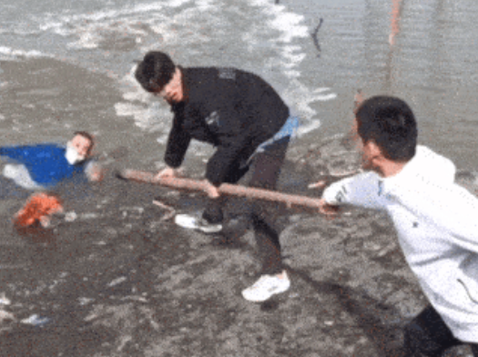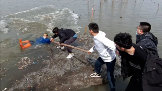 初春时节,冰都开化一般人不敢站上去他们临危不惧、有勇有谋合力断金、接力救人最终,在大家的共同努力下老人被成功救上岸