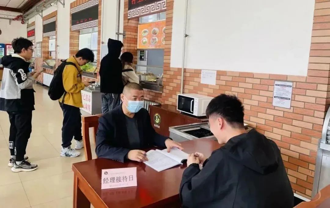 为加强师生对学校食堂的监督和管理,学校把每月27日设定为餐厅经理接待日,餐厅经理对于师生提出的饭菜价格、口味、餐厅环境、服务质量等建议做解答。同时,定期举办食堂开放日活动,增进师生对饮食服务工作流程和卫生保障工作了解,结合师生反馈意见建议,不断完善改进管理模式,优化食堂服务水平。