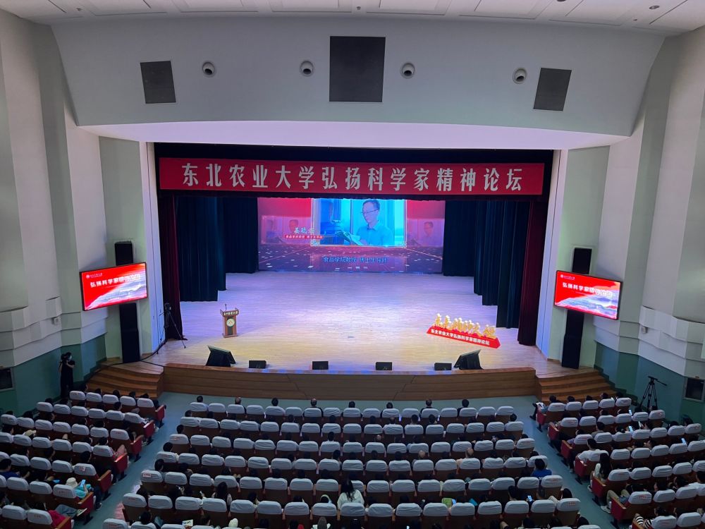 与会领导和师生首先观看了东北农业大学弘扬科学家精神论坛专题片《科学情·东农梦》。通过短片,大家共同回顾了建校75年来,一代代东农科技工作者为了“东农梦圆”而躬耕不辍的故事,并初识了做客本次论坛的六位嘉宾。