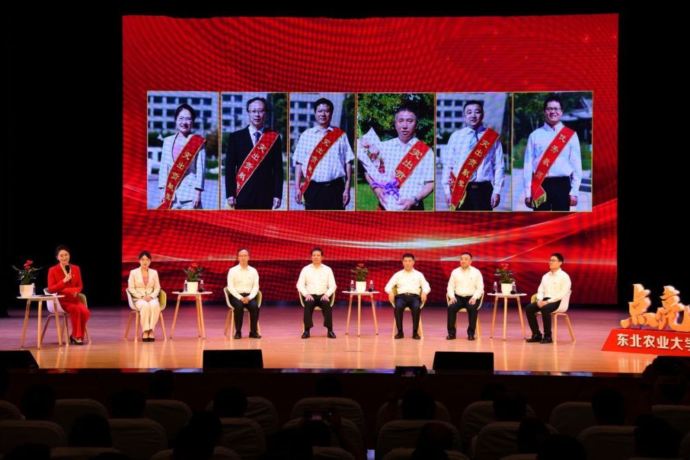 在与主持人的互动中,作为50后、60后、70后和80后数代东农科技工作者杰出代表的六位科学家,依次分享了他们对科学家精神的认知和理解,同时结合自身或专攻高精尖技术、或奔忙在产业一线、或奔波于城乡之间、或执着于三尺讲台的奋斗经历和感人故事,讲述了他们在师辈薪火相影之下带领团队和后生对科学家精神的践行和传承,深切展现了以爱国、创新、求实、奉献、协同、育人为要义的科学家精神在东农沃土上的赓续光大。