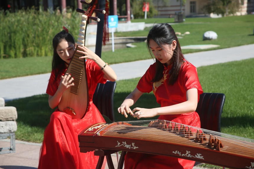 启动仪式前,校团委大学生乐团、后勤处幼儿园分别带来了民乐合奏《盛世国乐》、舞蹈《庆丰收》等热场节目。