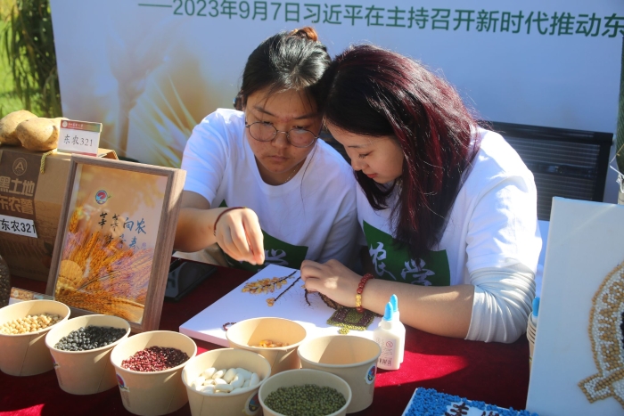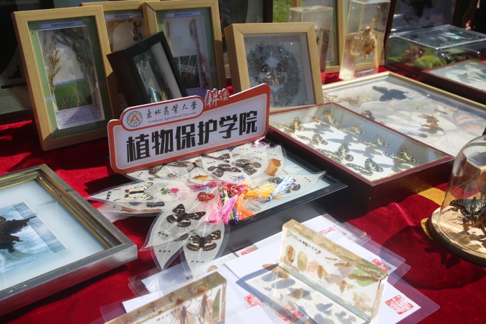 本次活动,共设有农耕史韵、谷粮农韵、物华神韵、墨香书韵、匠工心韵、花茗清韵、燕乐雅韵七个展区。在农耕史韵展区,介绍了我国悠长的农业历史和灿烂辉煌的农业文明,启迪人们坚定文化自信,传承中华农耕文明。在谷粮农韵展区,农学院对大豆,小麦,玉米,水稻,马铃薯作物进行品种展示,并在现场为大家提供了以学院各作物品种为原材料的大豆冰激凌、豆浆、米饭、薯条、杂粮粥、面食等食品。在物华神韵展区,资环学院为大家展示了各类土壤、岩石、菌类、肥料标本和部分气象勘测仪器设备。生命学院展出了东北农业大学标本馆建立70余年以来,馆藏的极具代表性的标本以及最新的标本数字馆成果,展现了学校在北方植物资源收集和多样性保护方面的成果和贡献。动物医学学院为大家展示了中兽医针具示教版、中兽医教学教具铡药刀、捣药罐、药碾、中成药、紫砂壶;外科教具马耳钳、牛鼻钳等。动物科学学院展出了牧草品种、东北特色冷水鱼等标本,并以展板的形式对学院的9个主要研发和转化成果进行了展示。植物保护学院展示了蝴蝶等昆虫标本,以及植物病理标本,充分展示了学院坚持“绿色植保”理念。在墨香书韵展区,书法是耕读文化的重要组成部分,活动现场邀请到了学校离退休工作处于泽源老师现场进行书法展示,校团委书画协会的学生也带来了自己的书画作品。在匠工心韵展区,园艺园林学院展示了寒地特色浆果“蓝靛果”的加工产品冻干粉、果酒、果浆以及学院最新选育的番茄、西甜瓜、黄瓜、白菜、南瓜等新品种和黄瓜子粉、番茄汁、农大酸菜等加工产品。食品学院以“春养人”“夏解暑”“秋入俗”“冬暖忆”四个时令模块划分食品品类进行展示,让广大师生追寻四季脚步,品味“舌尖上的现代农业”。农学院展示了无人机航行,VR体验等系列科技农业融合项目。电信学院展示了后装式无人插秧机、自主研发的农业控制及检测等现代农业装备。在花茗清韵展区,园艺园林学院的樊金萍教授团队为大家带来了插花展示,并设置插花体验区,让大家体验花卉的魅力,寓教于乐,融学于趣。在燕乐雅韵展区,校团委大学生舞蹈团和大学生合唱团联合展示了民族舞、演唱了与传统文化相关的歌曲。