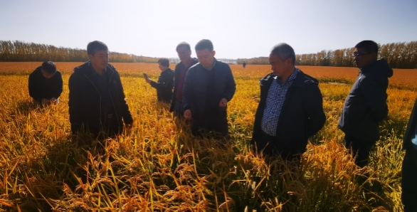 专家组实地考察水稻长势情况(央广网发 东北农业大学供图)