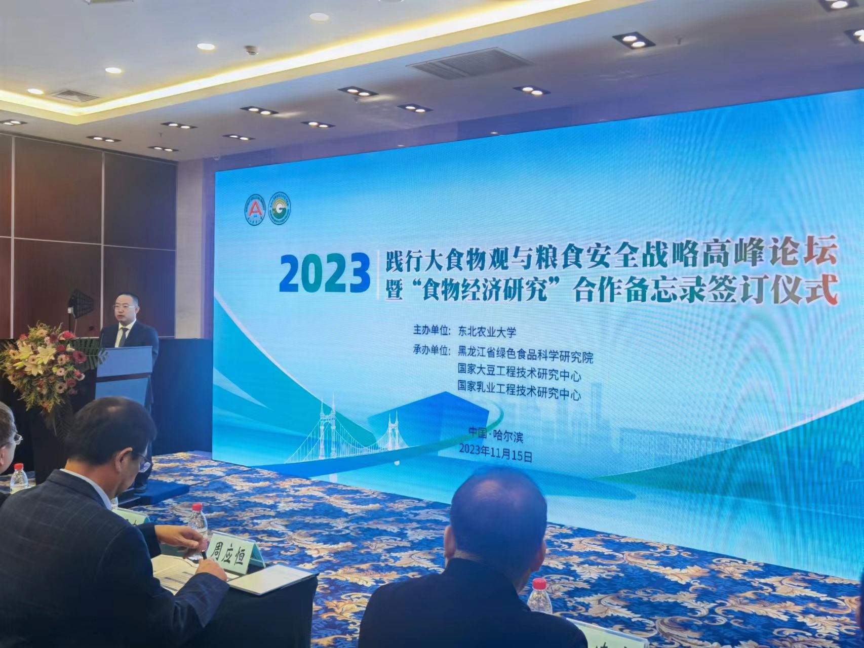 11月15日,践行大食物观与粮食安全战略高峰论坛暨“食物经济研究”合作备忘录签订仪式在哈尔滨举行。这是首届中国(黑龙江)国际绿色食品和全国大豆产业博览会的重要活动。