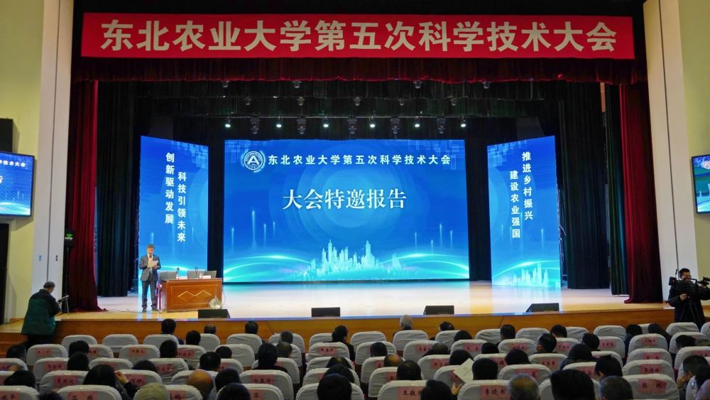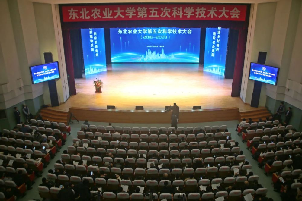 11 月 18 日,东北农业大学第五次科学技术大会在音乐厅召开。会议以“强化有组织科研,加快成果落地转化,提升学校科技创新整体效能”为主题,回顾总结了“十三五”以来学校科技创新工作取得的成效和经验,发布表彰了一批代表性成果,谋划部署未来一个时期学校科技工作重点任务。中国工程院院士、中国农业大学教授李德发,教育部科学技术与信息化司原司长、中国产学研合作促进会副会长雷朝滋,省科学技术厅厅长陈苏、省教育厅副厅长冯伟泉、省农业农村厅二级巡视员顾毅、人民日报社黑龙江分社社长崔佳、省直厅局业务主管处室领导等应邀出席会议,学校党委书记李长生,校长付强,党委副书记王泽方、贺景平,副校长李伟凯、孙占峰、刘竹青、刘晓峰,省绿色食品科学研究院党委书记、院长高放,校学术委员会委员及各专门委员会委员、学院教授委员会委员、二级岗教授、全校副处级以上干部,各学科团队带头人、国家和省部级平台负责人、重点科研项目负责人、科研秘书和科技管理干部、老科协专家代表、各学院教师、博士后,以及优秀研究生和本科生代表1000余人参加会议。会议开幕式由刘竹青主持。