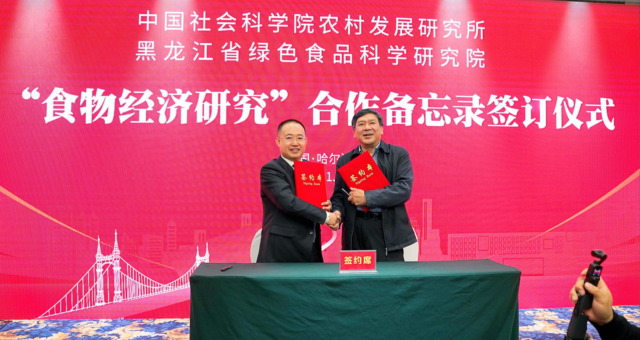会上,中国社会科学院农村发展研究所与黑龙江省绿色食品科学研究院关于“食物经济研究”合作备忘录正式签订,标志着双方将充分发挥各自优势,进一步加强在食物经济研究相关领域的资源共享、互通互鉴,争取为我国食物经济研究乃至“农业——食物”系统转化提供更多创新解决方案。