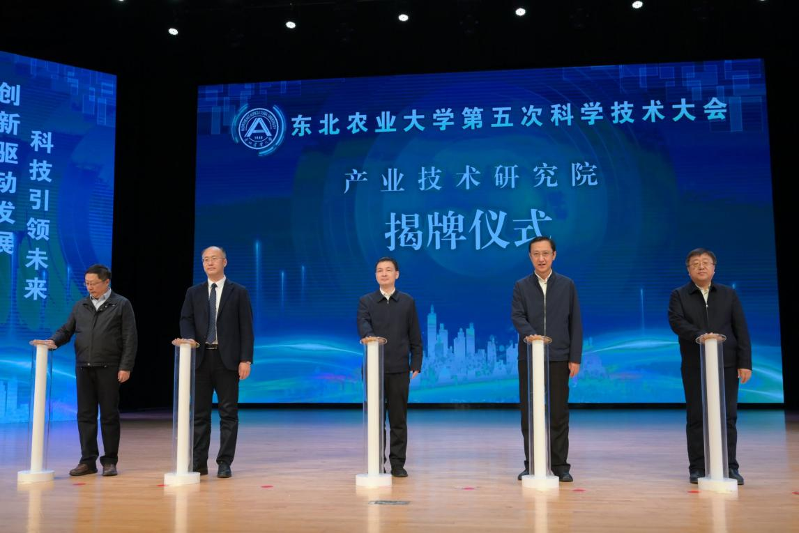 与会领导共同为东北农业大学产业技术研究院揭牌。同时,举行东北农业大学科研创新服务平台启用仪式。