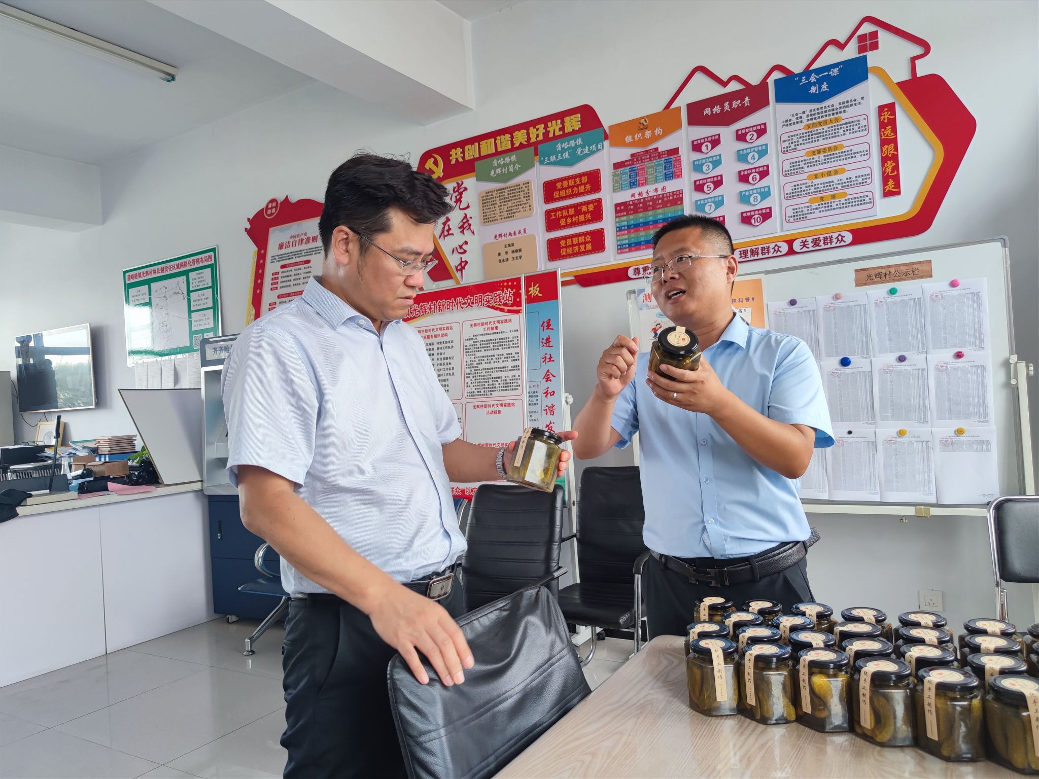 今年8月,东发村迎来了东北农业大学动物科学技术学院胡国富教授科研团队。作为东北农业大学定点帮扶村,东发村成为了学校的实验场地和科技成果转化的实施地,团队的大豆高效生产及转化技术项目从农作物综合高效利用、防涝助耕的角度出发,通过虫草共生的原理,合理利用昆虫啃食大豆叶片的特性,适当疏减叶片密度,提升大豆的光合效率,从而提高作物产量。同时,昆虫将大豆叶片蛋白转化为动物蛋白,通过提取优质蛋白和微量元素等有益物质,产生额外的经济效益。