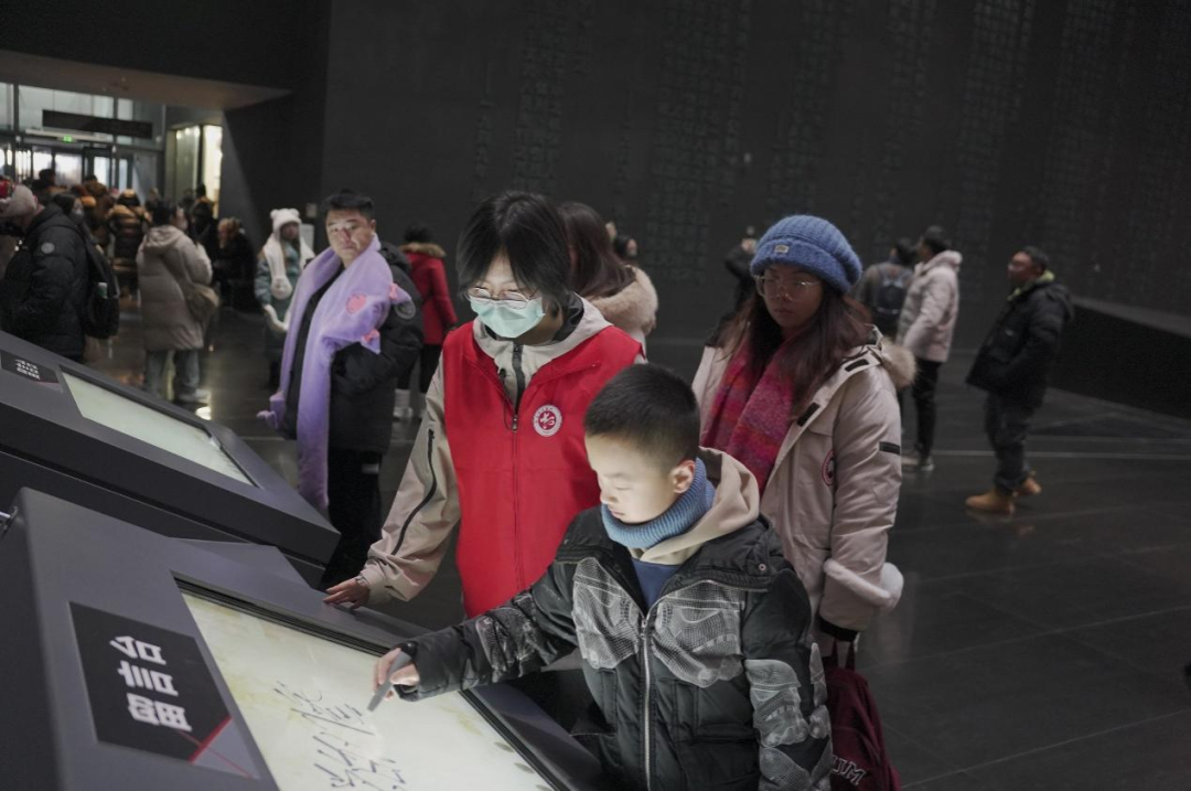 志愿者在侵华日军第七三一部队罪证陈列馆提供服务。