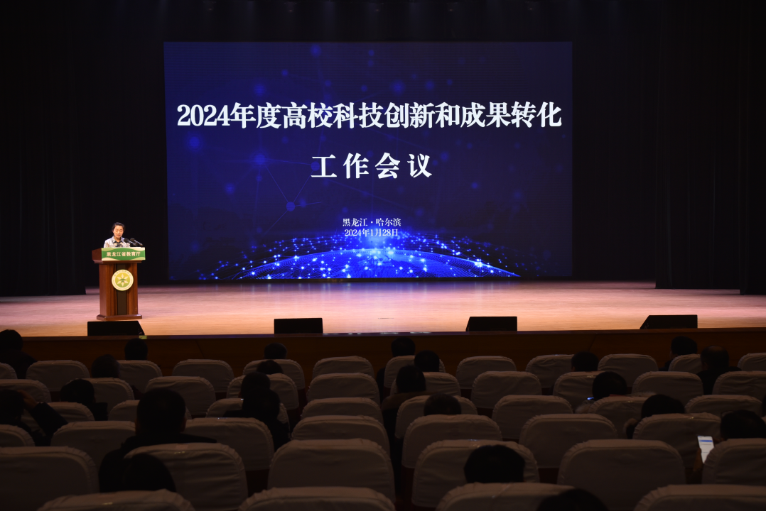 为深入学习贯彻习近平总书记视察黑龙江省期间的重要讲话重要指示精神,深入落实全省创新发展大会部署及系列政策要求,总结交流2023 年全省高校科技创新和成果转化工作,谋划安排2024年相关重点任务。1月28日上午,2024年度高校科技创新和成果转化工作会议在我校音乐厅召开,黑龙江省教育厅副厅长冯伟泉,科技与信息化处处长王跃然等出席会议,东北农业大学副校长孙占峰以及来自全省高校分管科技工作的校领导及部门负责同志140余人参加会议,我校科学技术处(社会科学处)、社会合作与成果转化中心(新农村发展研究院)负责同志参加会议。会议由黑龙江省教育厅科技与信息化处副处长潘俊霞主持。
