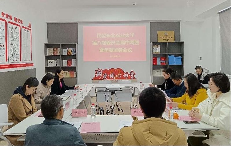 3月20日,民盟东北农业大学委员会在学校党外知识分子活动之家召开第八届委员会届中调整暨年度盟务会议,民盟东北农业大学委员会主委许修宏、副主委许晓曦、刁卓,部分委员及校统战部工作人员参加会议,会议由许修宏主持。